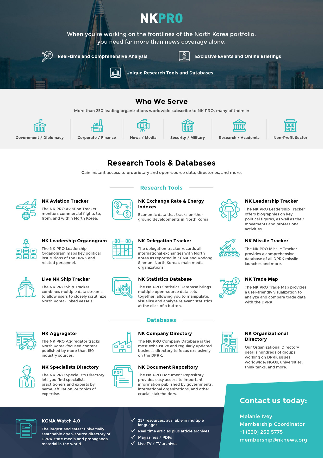 These platforms are subscription-based resources that deliver essential news, data, and analysis on North and South Korea to support professionals across the business, academic, and government communities.