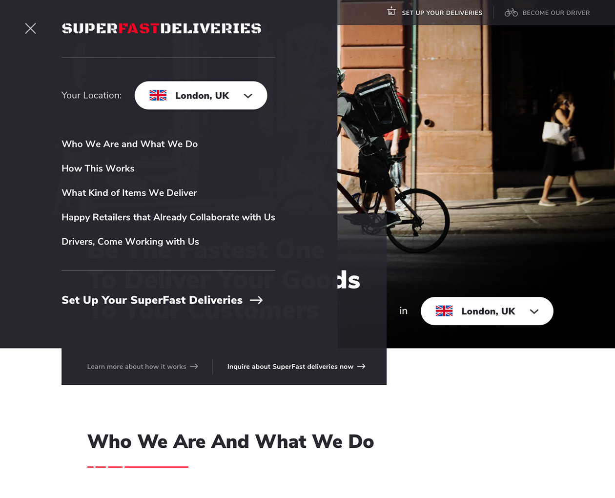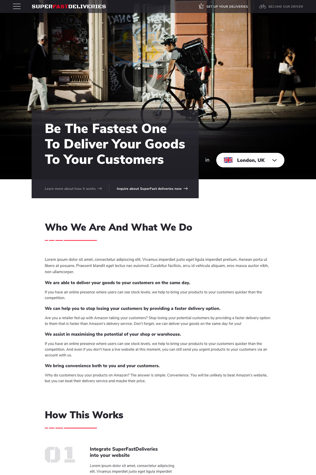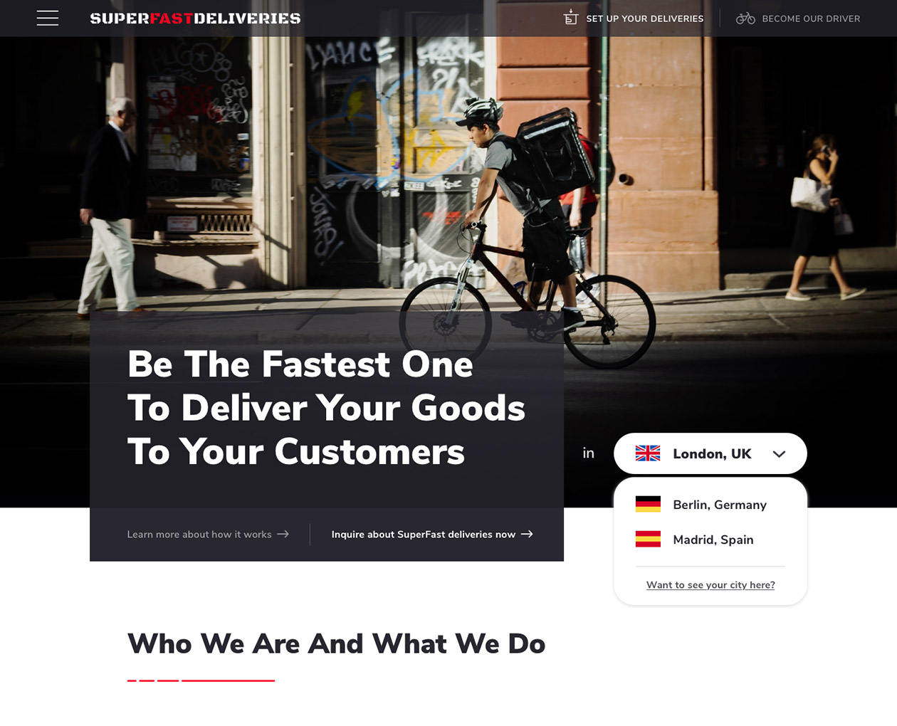 The SuperFastDeliveries websites were designed to create a unified brand and serve as a professional digital presence for a new startup, demonstrating their B2B logistics services provided across the English, Spanish, and German markets, and setting it apart from competitors with less customized online solutions.
