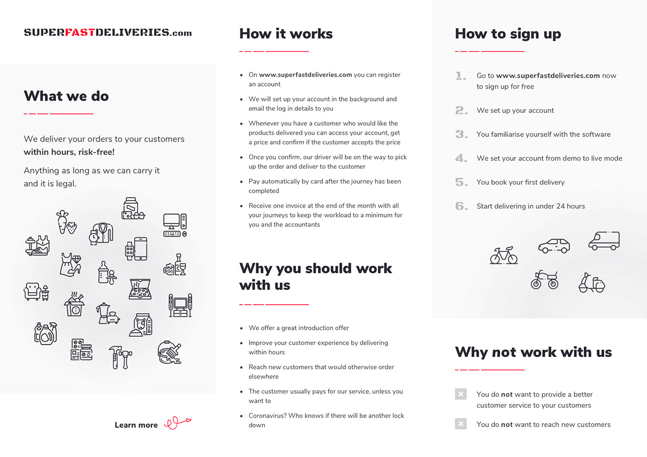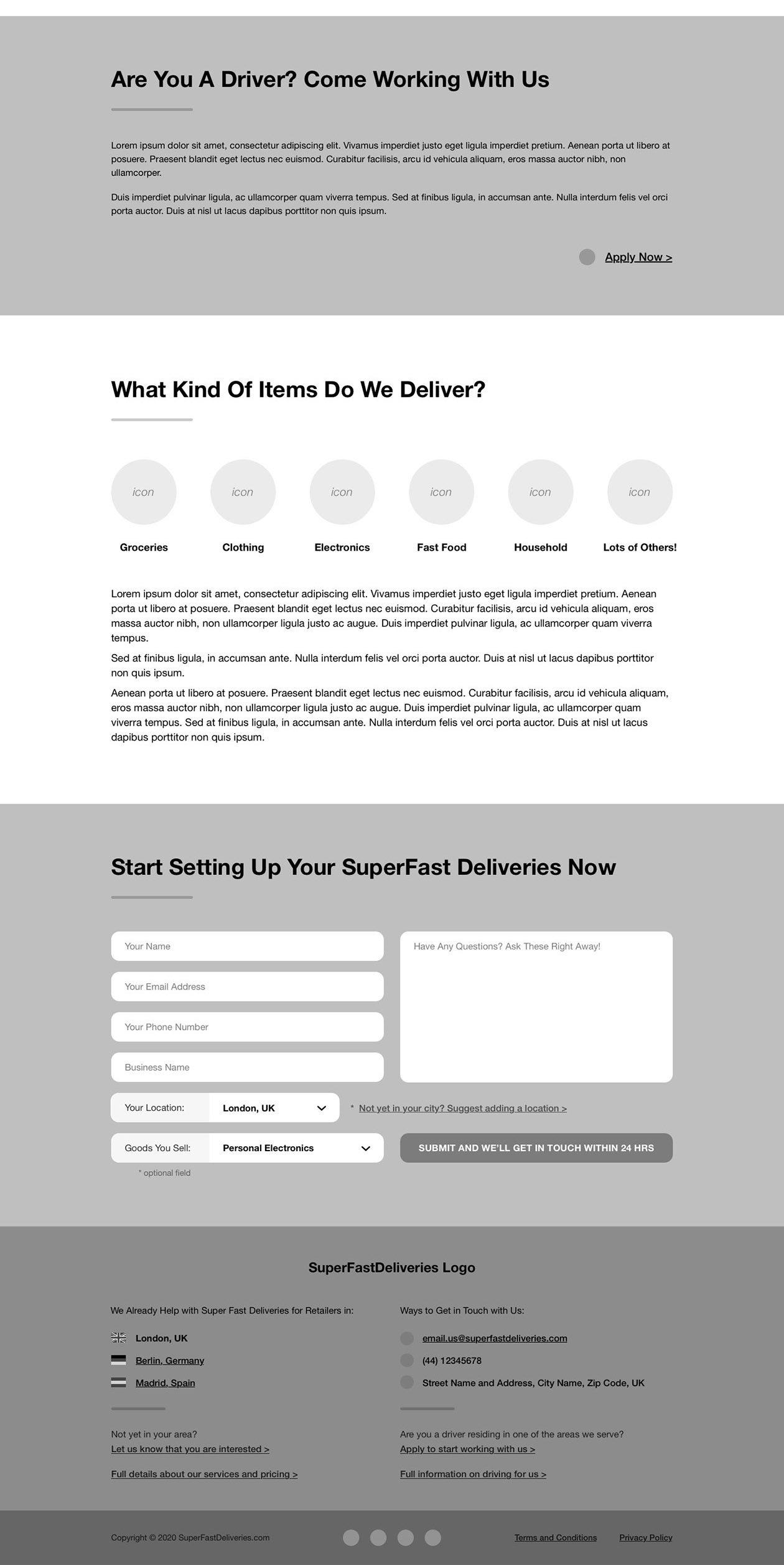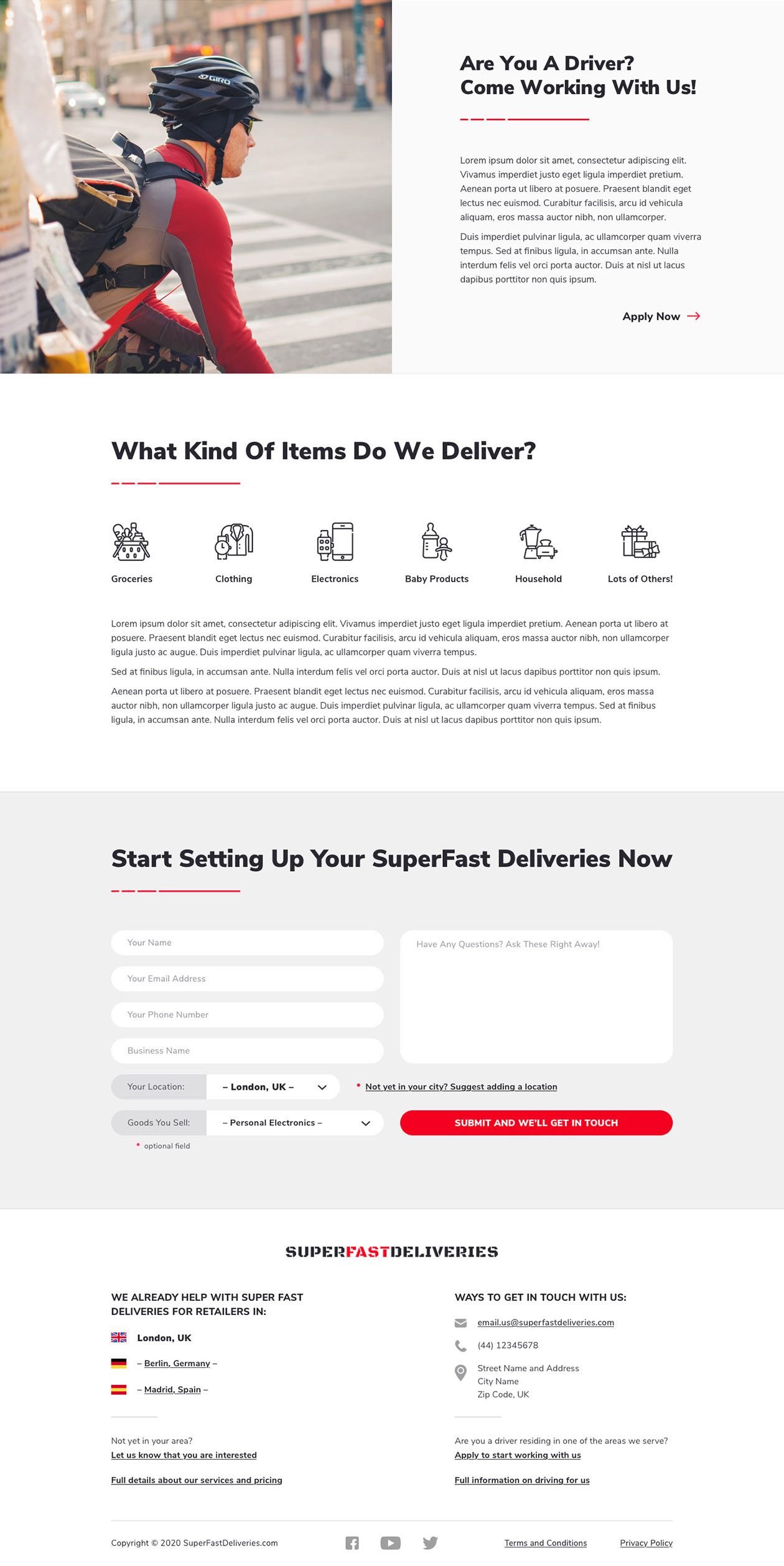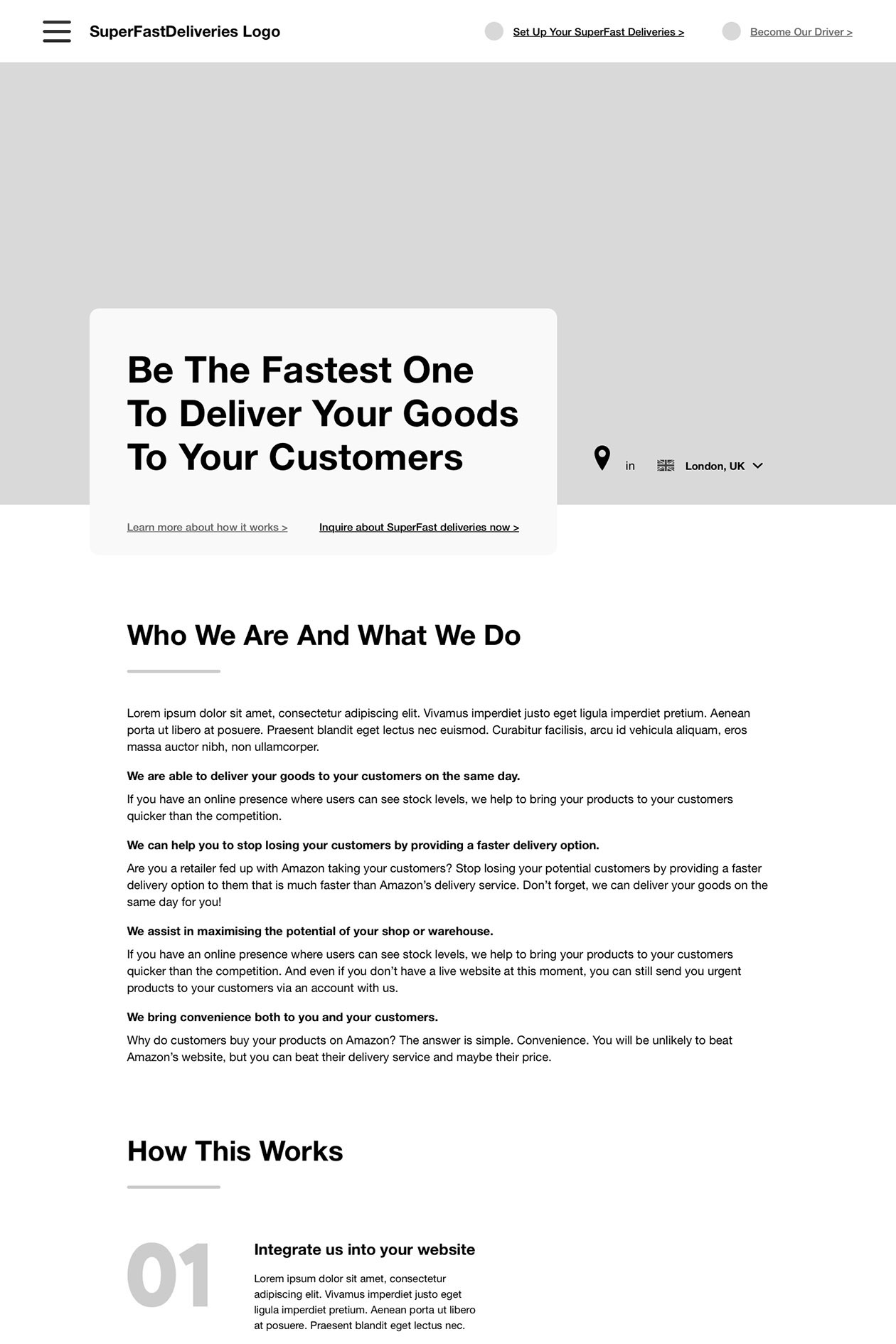 The SuperFastDeliveries websites were designed to create a unified brand and serve as a professional digital presence for a new startup, demonstrating their B2B logistics services provided across the English, Spanish, and German markets, and setting it apart from competitors with less customized online solutions.